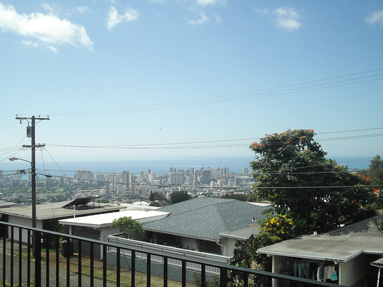 St Louis Hights という山のテッペンのPeter Streetでございますー。 車が上るときも降りるときもかなりひーこら言っているのですが、ホント、頑丈な日本車にしておいてよかった~と思うのであります。 で、トップの写真は庭からの眺め。 遠くに見えるビルがワイキキですー。 で、ビルの上部にあるのは空ではなく、海です。